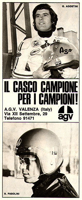 Ago pops up again, flogging AGV helmets. He's joined by the legendary Renzo Pasolini,