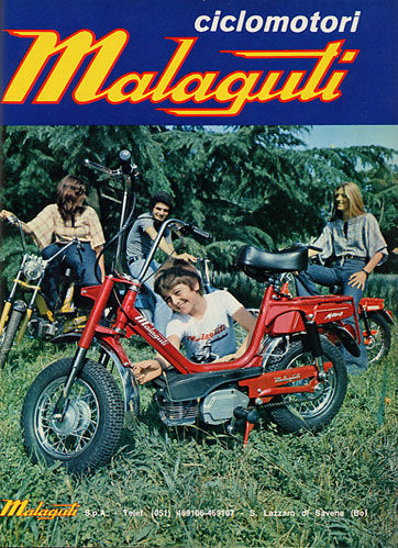 a Piaggio Ciao and a Honda/Suzuki Monkey bike. Cheesecloth shirts and flared