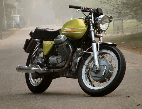 model: 750 V7 SPORT country: Holland engine number: VK31782 frame number: VK12766 name: Charles van Stralendorff email: kadeboer2@hotmail.com notes: My Sport has engine nr.Vk 31782 and frame nr. Vk 12766 It was registerd in February 1975, but it must be older than that. When I bought it it in 1987 it had a little damage from falling down on the right side. And the frame was sprayed red and it had a white fuel tank and tool boxes. On the tank was an Italian Tricolore painted. It also had a duc 750 ss tophalf also painted white. First thing I did was rebuiling the engine with new main bearings and bid-ends because it sounded pretty worn out. After that it was running very good. A year later it got a paint job in original green and a black powdercoated frame. In 1999 and after more or less 80000 km's the rotor from the alternator broke down and it was tight rusted on the crank so I had to take out the engine to remove it. I took engine plus gearbox apart sandblasted the whole thing replaced some bearings in gearbox and the bigends and also the exhaust valves. And again it is still running okay. I'm not shure about top speed. The rev needle is still running out of scale with the throttle full open and the speedo goes over 200 km/h, I know those are Italian values. I love the handling and the looks of it and I enjoy sitting somewhere drinkin a cup of coffee looking at the people who are atracted to it. Its remarkeble that interest in these bikes are growing so fast and I notice because I'm riding it for a long time now (next to a V7 Gt california with Steib sidecar) Adam this is my short history with this bike, I think it is usefull - Charles van Stralendorff (Holland) |